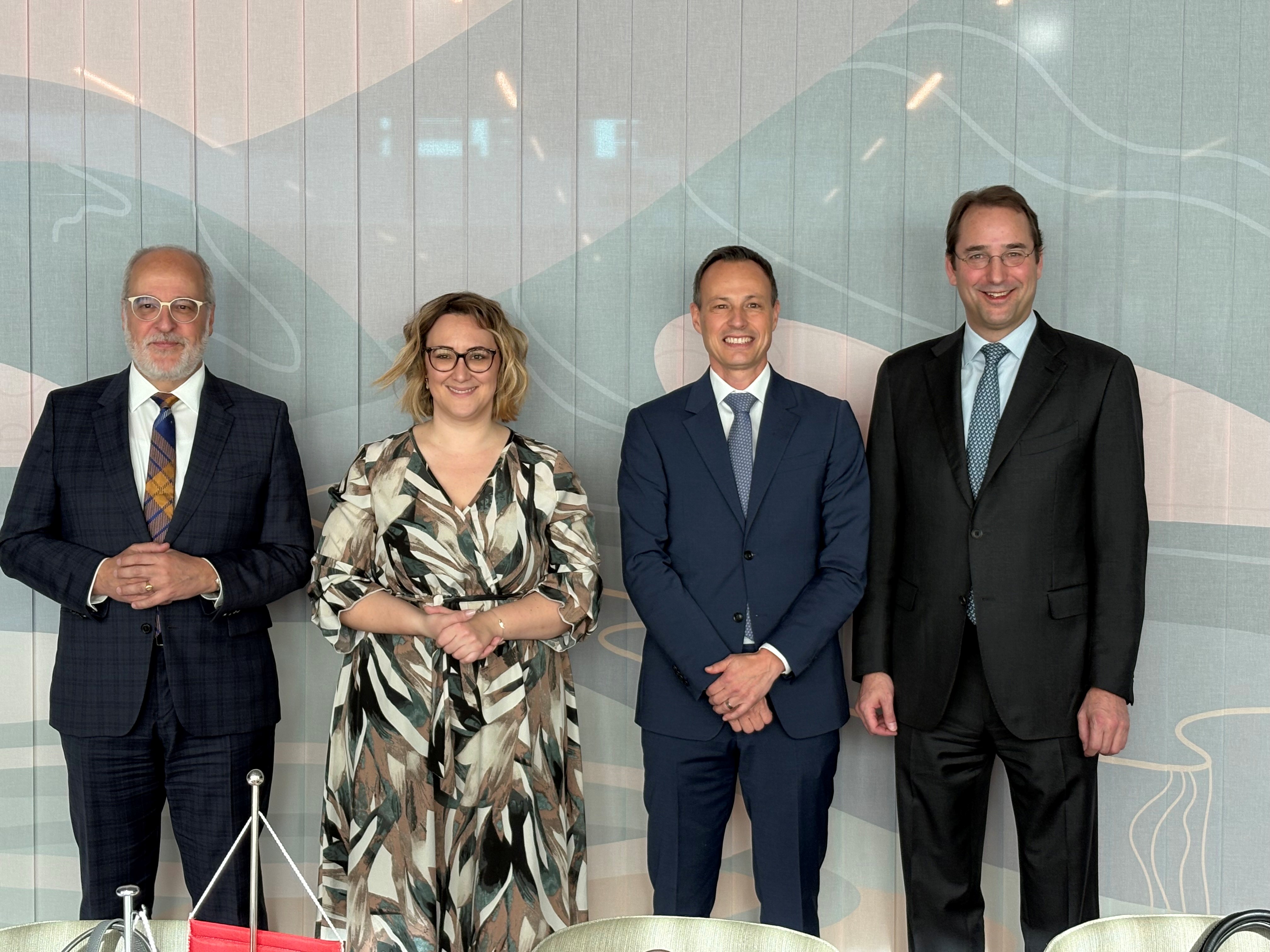 Am Mittwoch, 12. November 2025, weilten auf Einladung von Botschafter Martin Frick, Leiter des Amts für Auswärtige Angelegenheiten, die Staatssekretäre der Aussenministerien der Schweiz und Sloweniens, Alexandre Fasel und Neva Grašič, und der Generalsekretär des österreichischen Aussenministeriums, Nikolaus Marschik, in Liechtenstein. Im Zentrum des Besuchs standen politische Konsultationen zu aktuellen Themen. Diskutiert wurden der russische Angriffskrieg gegen die Ukraine mit einem besonderen Fokus auf den Wiederaufbau, die transatlantischen Beziehungen und deren Bedeutung für die europäische Sicherheit, die jüngsten Entwicklungen im Nahen Osten sowie die Zukunft der europäischen Zusammenarbeit. „Gerade in herausfordernden Zeiten ist es entscheidend, dass wir uns mit engen Partnern austauschen und  unsere Positionen abstimmen“, betonte Martin Frick, Amtsleiter des Amts für Auswärtige Angelegenheiten.