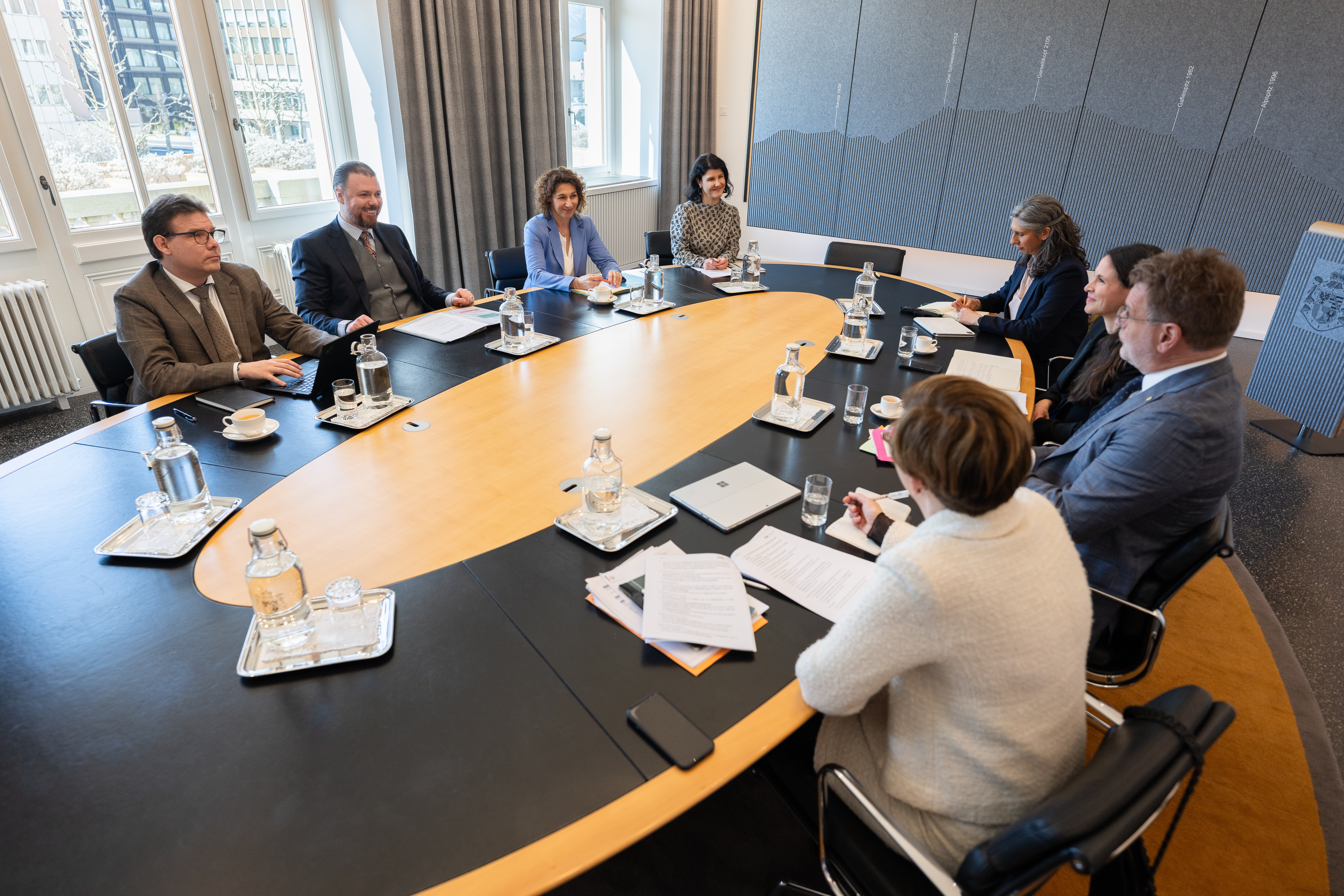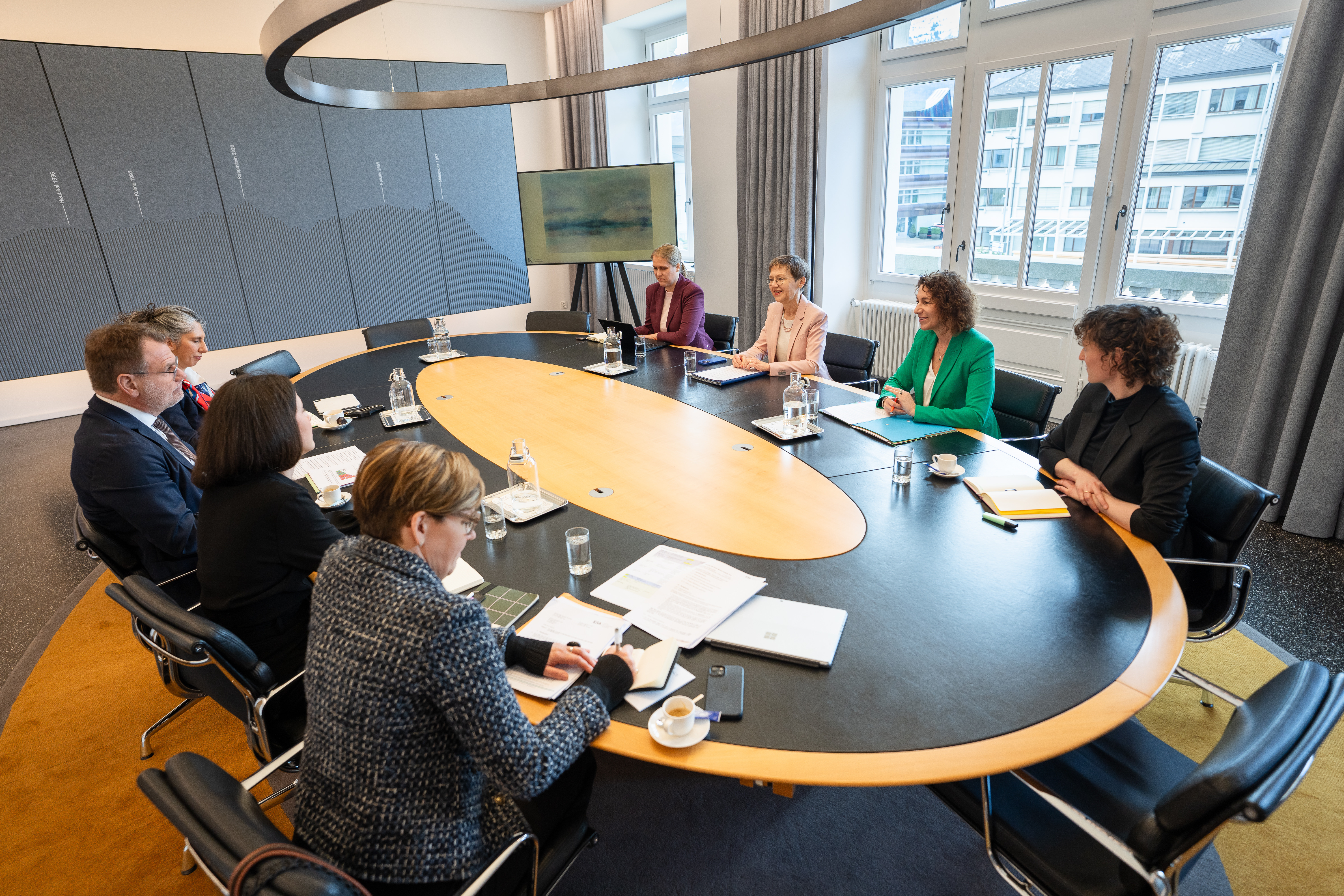 Vom 23. bis zum 25. März 2026 fand das «Package Meeting» mit der EFTA-Überwachungsbehörde (ESA), dem Kontroll- und Überwachungsorgan des EWR-Abkommens, in Vaduz statt. An den diesjährigen Gesprächen nahmen seitens der ESA das isländische Kollegiumsmitglied Árni Páll Árnason und das neue liechtensteinische Kollegiumsmitglied Nuscha Wieczorek sowie 18 weitere Mitarbeiterinnen und Mitarbeiter teil.