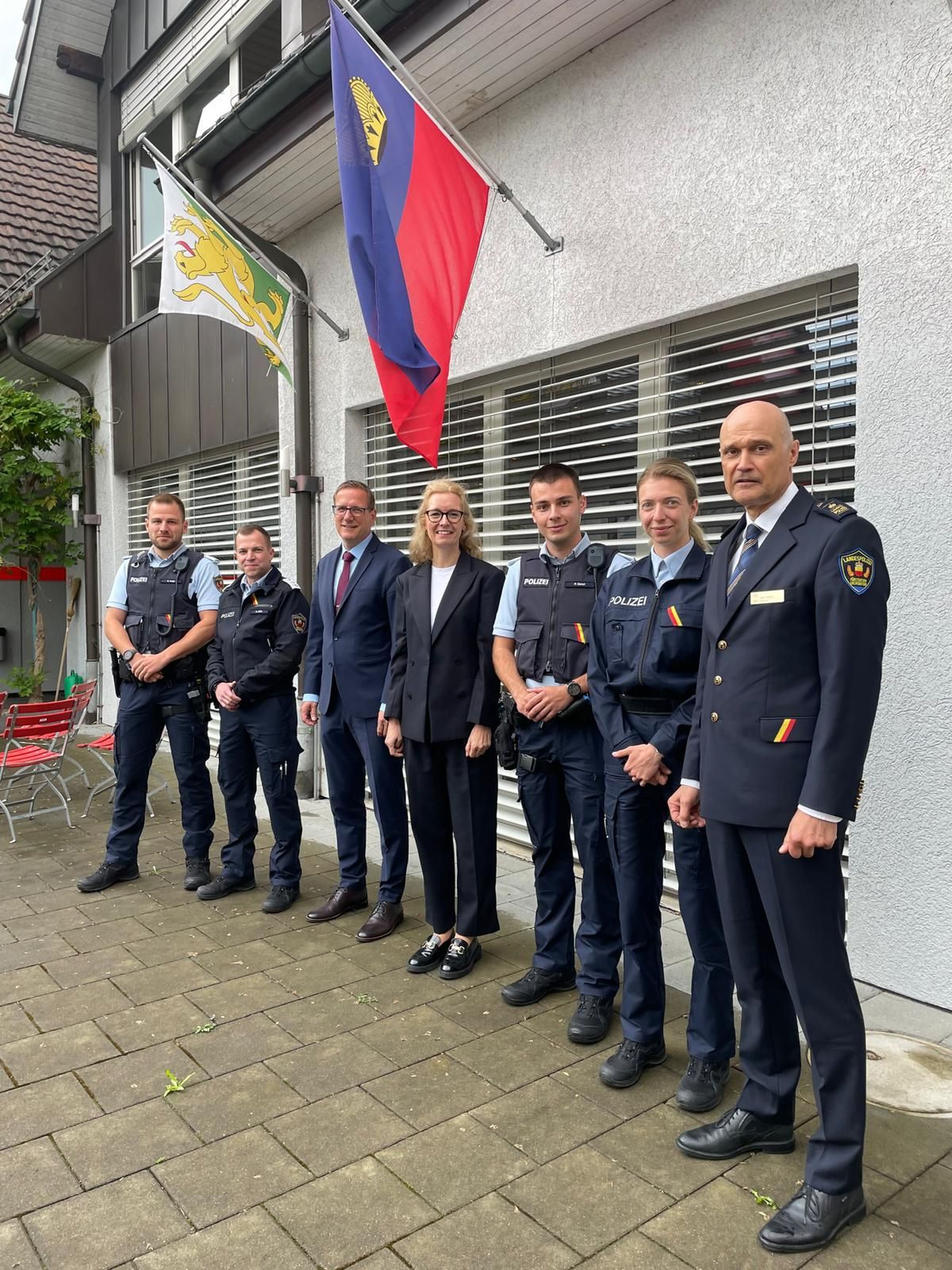 In Begleitung von Polizeichef Jules Hoch konnte sie einen Einblick in das Polizeieinsatztraining nehmen und sich mit den vier liechtensteinischen Polizeiaspiranten austauschen. Die Auszubildenden erhalten im Polizeieinsatztraining die Gelegenheit, die erlernten Fertigkeiten und theoretischen Kompetenzen zu vernetzen und in verschiedenen, polizeialltäglichen Situationen anzuwenden.