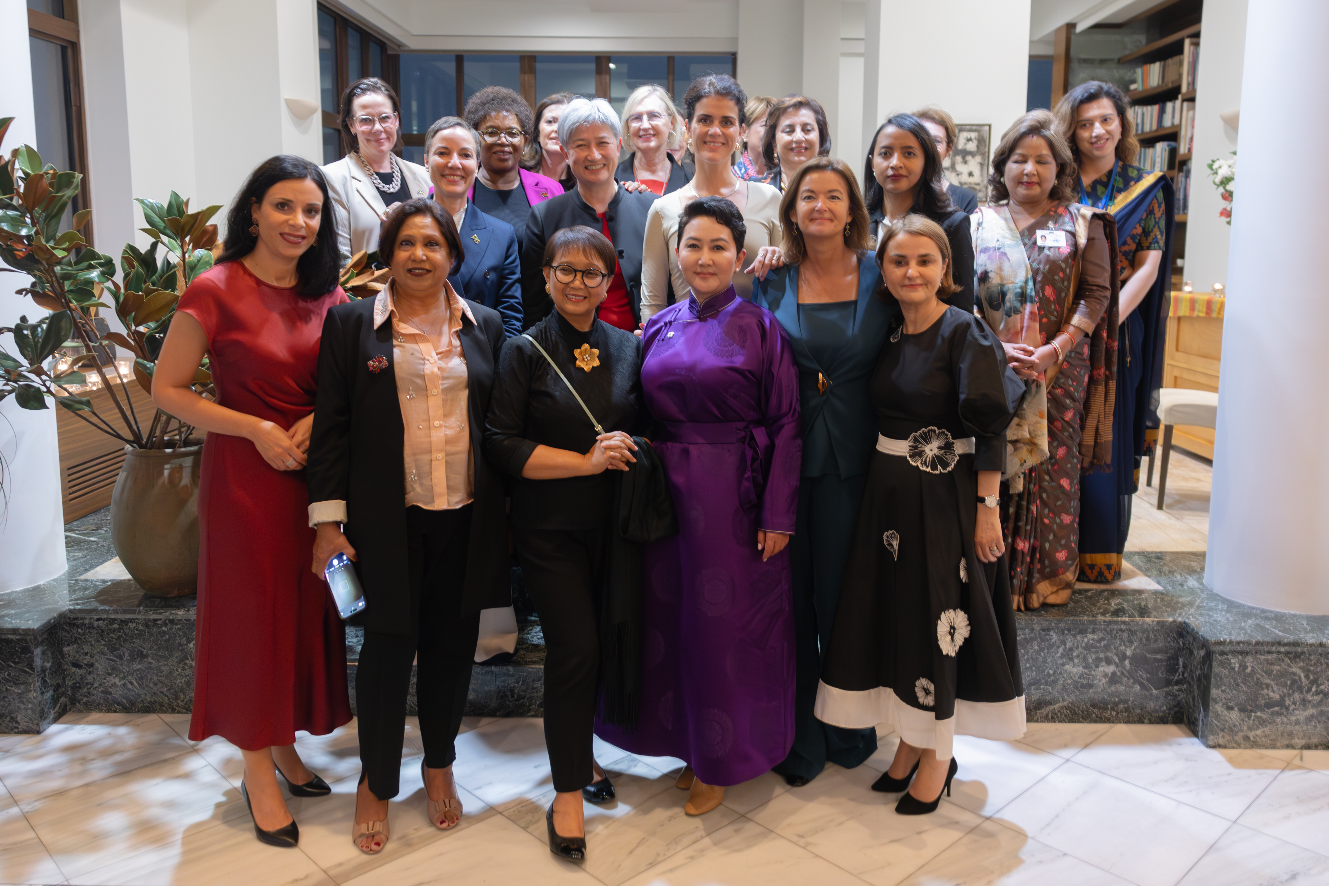 Gemeinsam mit der kanadischen und slowenischen Amtskollegin lud Aussenministein Hasler zum traditionellen Zusammentreffen aller Aussenministerinnen sowie weiterer weiblicher Führungspersönlichkeiten ein. Das Treffen ermöglicht einen informellen Austausch zu aktuellen Themen und bietet Liechtenstein einen einzigartigen bilateralen Zugang zu den jeweiligen Staaten. Die von Liechtenstein initiierte Tradition, dass sich die Aussenministerinnen regelmässig treffen, hat dazu geführt, dass viele weitere Initiativen daraus entstanden sind. Zuletzt trafen sich die Aussenministerinnen vor der UNO-Generalversammlung in Toronto, um gemeinsam an den Themen «Women, peace and security» und der Bekämpfung von Desinformation zu arbeiten.